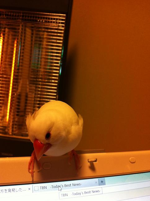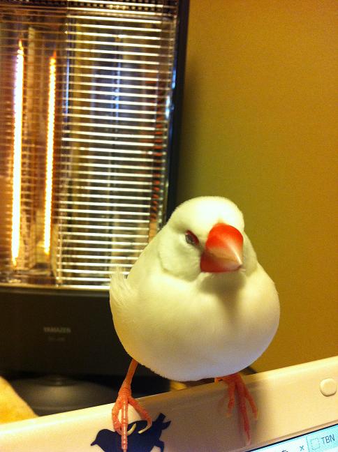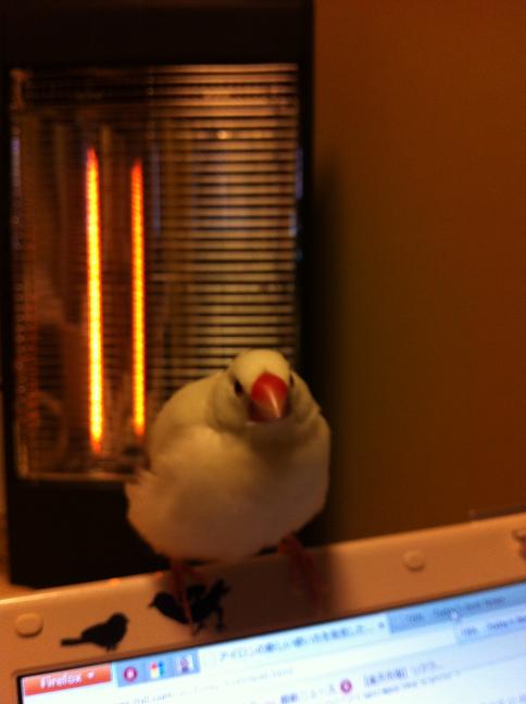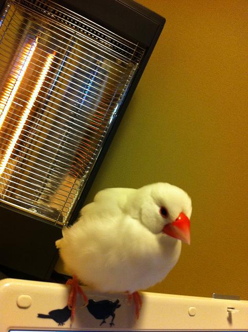 うとうと。この後、首をおさめて、完全に丸くなって寝てしまいました。鳥さんにとっても気持ちのよい暖かさなんですね。これで我が家もこの厳冬を乗り切れそうです。
