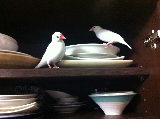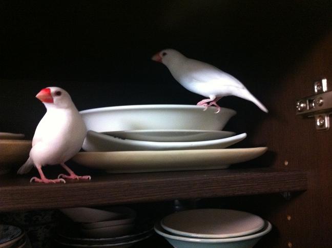 最近は食器戸棚に夢中のよもプク。中の薄暗さが巣として魅力的に見えるのかもしれません。